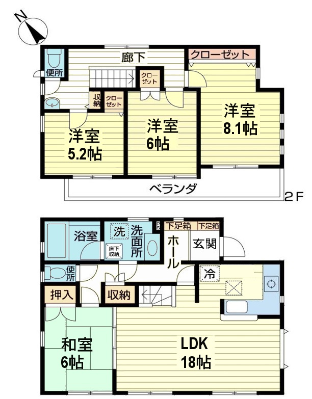 LDK 18.0帖 / 和室 6.0帖 / 洋室 8.1帖 / 洋室 6.0帖 / 洋室 5.2帖 / |