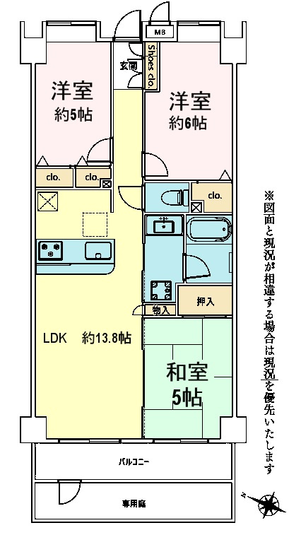 LDK 13.8帖 / 和室 5.0帖 / 洋室 5.0帖 / 洋室 6.0帖 / |